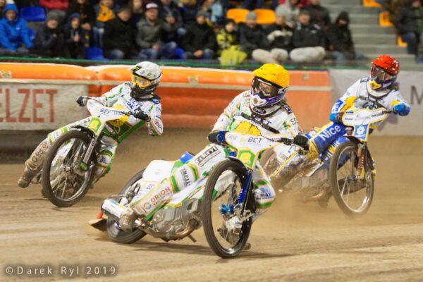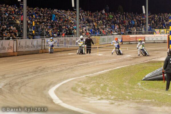 Świetnym startem popisał się Kenneth Bjerre, którego do samej mety atakował Leon Madsen, ostatecznie na metę jako pierwszy wpadł zawodnik gości. Stawkę zamknął Patryk Rolnicki.