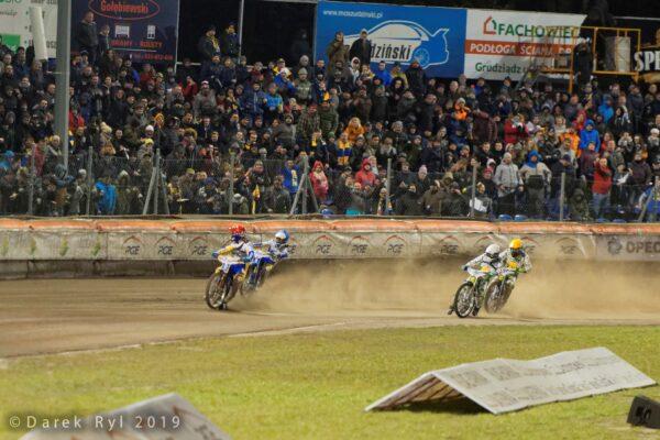 Pierwszy bieg w Grudziądzu w sezonie 2019 za nami. Ze startu najlepiej para gości. Na wyjściu z pierwszego łuku na drugą lokatę przebił się Antonio Lindbaeck, na drugim okrążeniu Kenneth Bjerre pokonał Pawła Przedpełskiego.