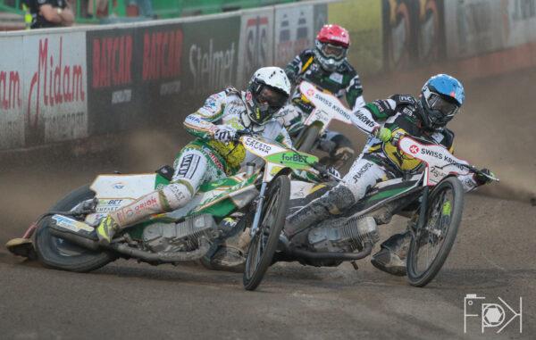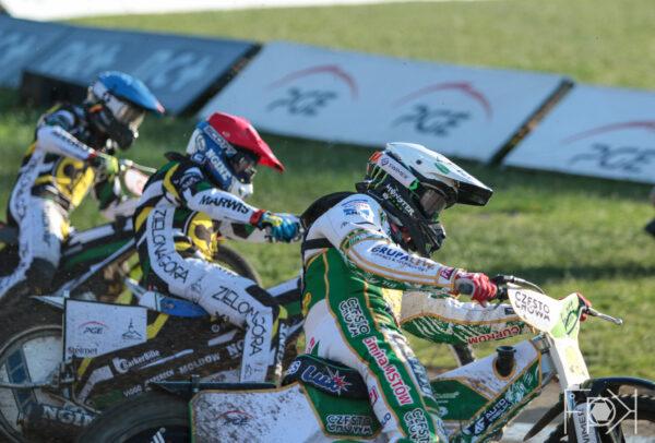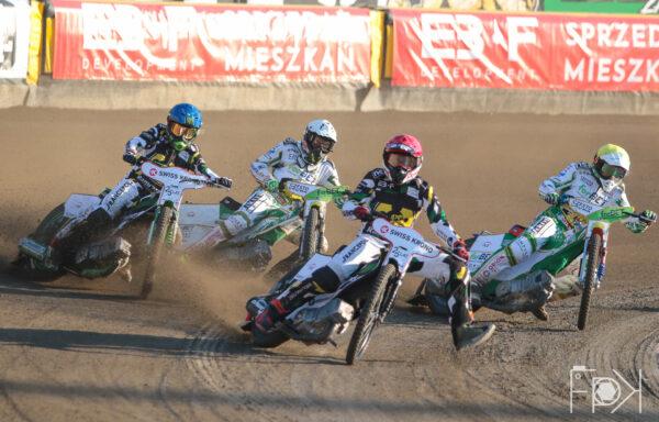 Juniorzy STELMET Falubaz Zielona Góra wykazali się lepszym refleksem, ale to Michał Gruchalski ładną jazdą po zewnętrznej szybko nadrabia straty i wychodzi na prowadzenie. Jego zespołowy kolega, Jakub Miśkowiak, nie miał tyle szczęścia i został na tyłach. Kolejny bieg gęsiego.