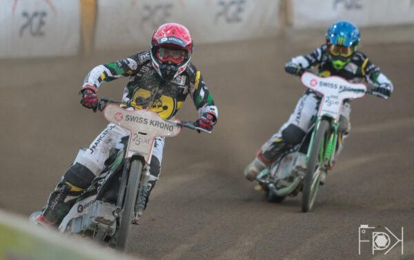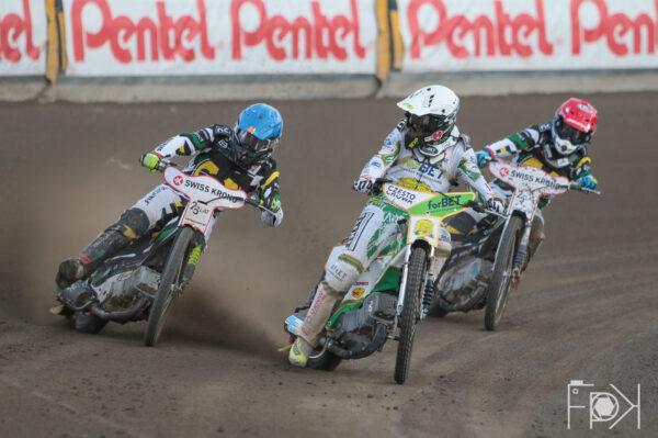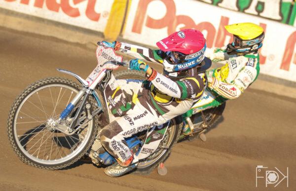 Nicki Pedersen z Matejem Zagarem wymienili się dwukrotnie pozycjami na pierwszym okrążeniu. Potem już dziś tradycyjnie, jazda jeden za drugim do mety.