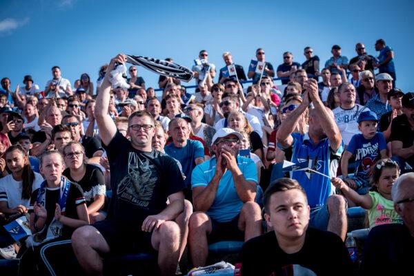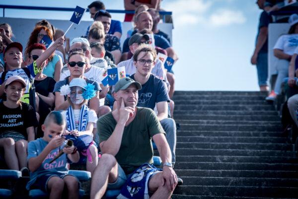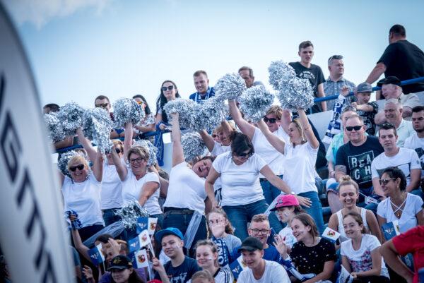 A tymczasem w przerwie na stadionie trwa próba pobicia rekordu Polski z najdłużej trwającej meksykańskiej fali.