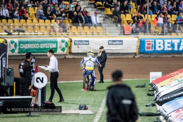 Maksymilian Bogdanowicz upadł na tor po wyjezdzie z parku maszyn, konieczna była zmiana motocykla, jednak junior GET WELL Toruń zdążył na czas stawić się pod taśmą.