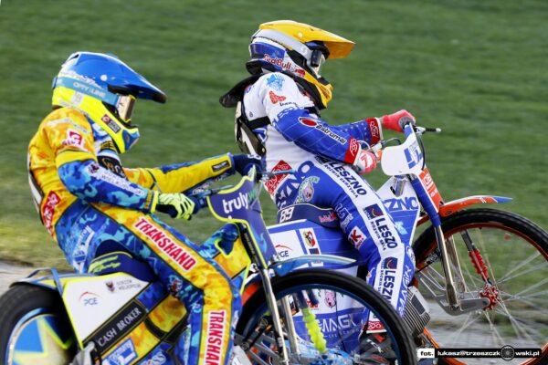 Sayfutdinov wygrywa start i zakłada na wejściu w pierwszy łuk Zmarzlika. Po szerokiej napędził się Kołodziej i goście z Leszna wyszli na prowadzenie 5:1. Na dystansie Zmarzlik atakiem przy bandzie minął Kołodzieja i przedzielił parę "leszczyńskich byków".