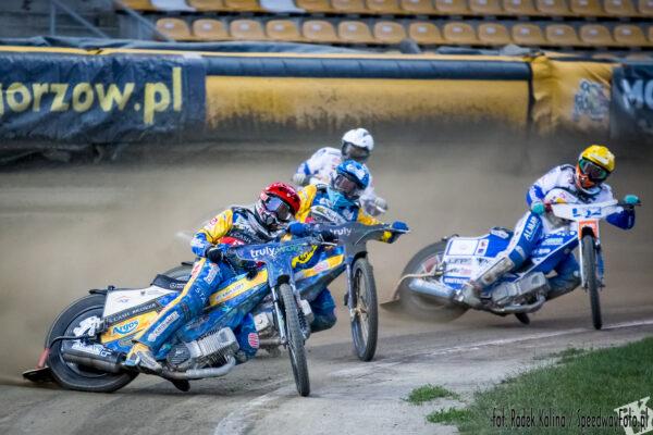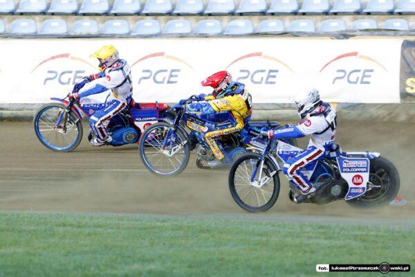 Atomowym startem popisały się "leszczyńskie byki". Na szczycie łuku napędził się Anders Thomsen i atakiem pod łokieć na przeciwległej prostej wyprzedził Kołodzieja. Pawlicki do samej kreski musiał uważać na napędzającego się za jego plecami Duńczyka. Nie liczył się w tym biegu Woźniak.