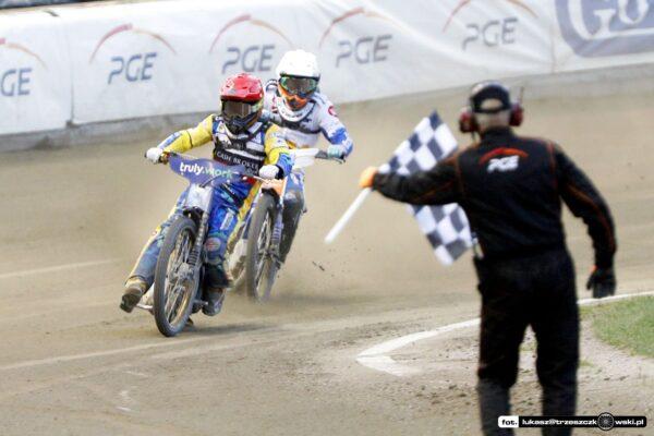 Start wygrywa Piotr Pawlicki. Na dystansie Pawliki z Zmarzlikiem tasowali się na prowadzeniu. Na wejściu w ostatni łuk Zmarzlik wszedł pod łokieć Pawlickiego i o długość motocykla wygrał bieg.