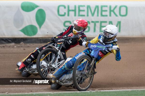 Bardzo dobry start Szymona Woźniaka, który od razu wyszedł na prowadzenie. Na drugim okrążeniu, po wyprzedzeniu Taia Woffindena, do Woźniaka dołączył Anders Thomsen zapewniając gościom podwójne zwycięstwo w wyścigu, tym samym wyrównując wynik dzisiejszego spotkania.