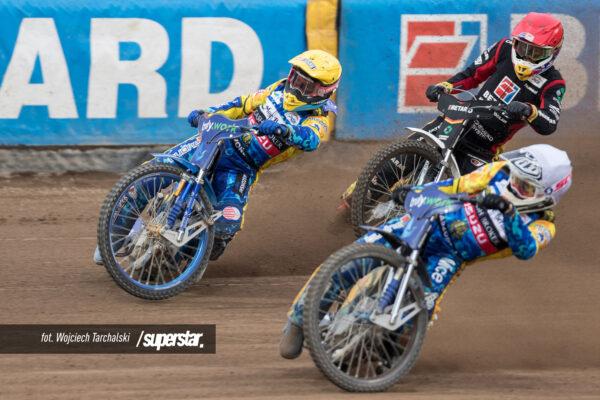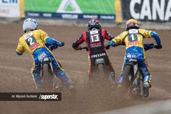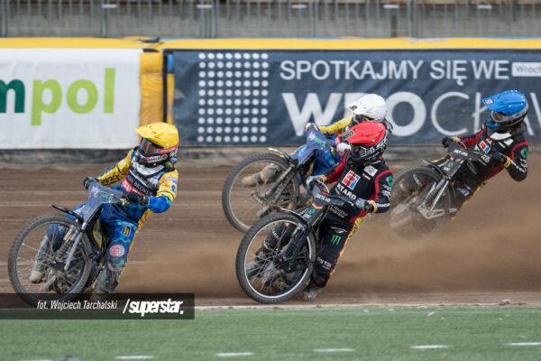 Najlepiej ze startu Bartosz Zmarzlik i to on wyszedł na prowadzenie. Maciej Janowski wyprzedził go jednak pod koniec pierwszego okrążenia. Max Fricke daleko z tyłu.