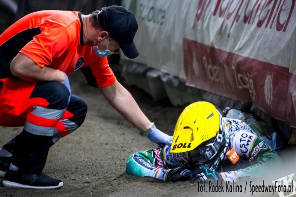 Na wyjściu z pierwszego łuku defekt miał Rafał Karczmarz. Postawiło motocykl juniora gospodarzy i by uniknąć zderzenia Holta położył motocykl.