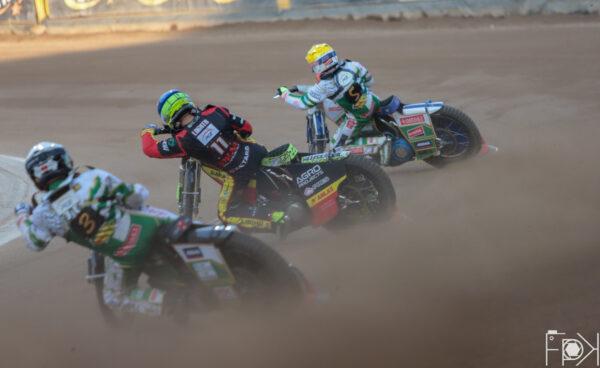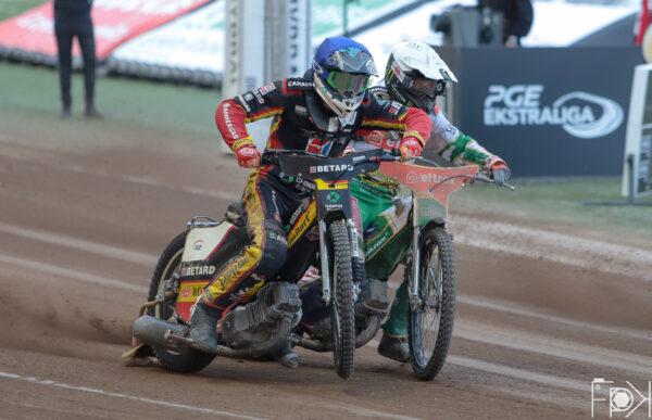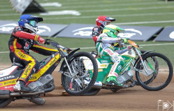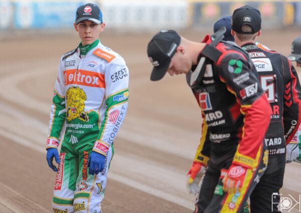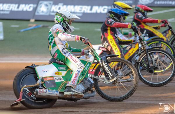 Świetny moment startowy Kacpra Woryny, którego sprytnie wywiózł jednak Tai Woffinden. Polak wyszedł na drugie miejsce, ale za nim napędzał się Daniel Bewley, który na drugim okrążeniu znalazł receptę na żużlowca ELTROX Włókniarza. Gospodarze wygrywają podwójnie i dopisują do ligowej tabeli 3 punkty!