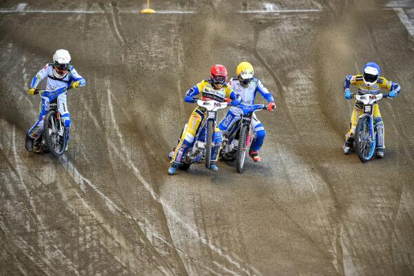 Bartosz Zmarzlik zakłada wszystkich na wejściu w pierwszy łuk i bieg układa się na remis. Na dystansie utworzyły się bezpieczne odległości między zawodnikami i mamy pierwszy dziś biegowy remis.
