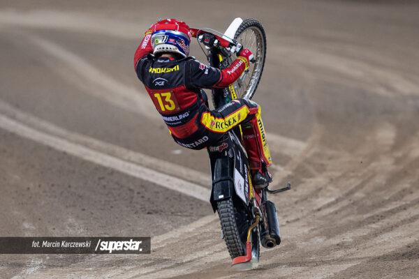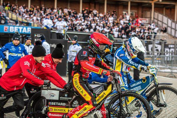 Maciej Janowski w rakietowym trybie z ubiegłego sezonu zaczyna ten sezon! Goście lepiej wyszli spod taśmy, ale Janowski po szerokiej nie zostawił im żadnych złudzeń. Bewley kąsał z czwartego miejsca, ale tym razem punktów nie wywalczył. Kolejny remis.