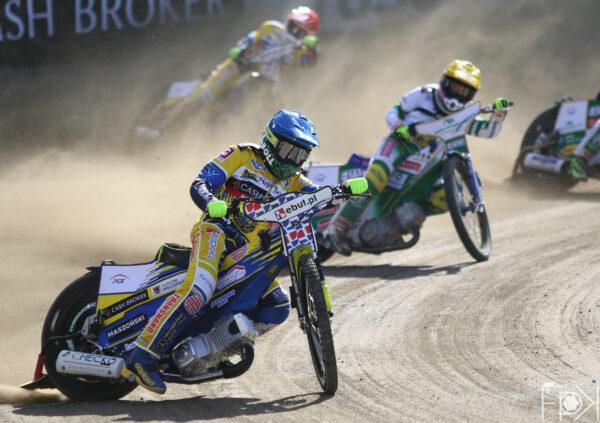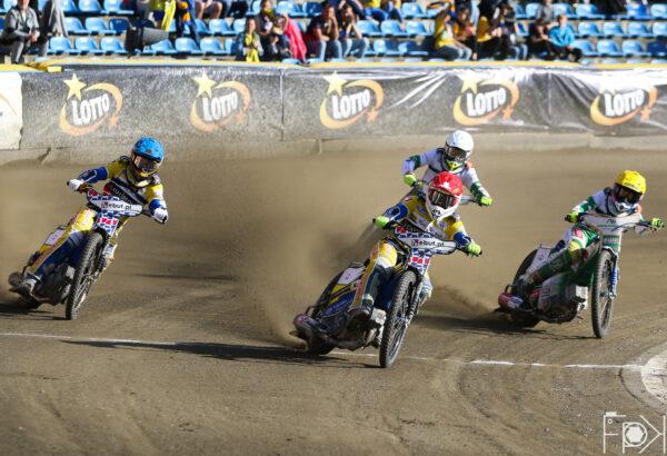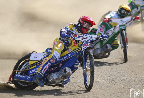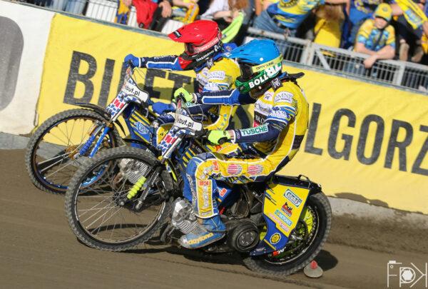 Atomowy moment startowy gorzowskiej pary! Na dystansie Anders Thomsen uciekł daleko do przodu, a Wiktor Jasiński skutecznie odpierał ataki Madsena.
