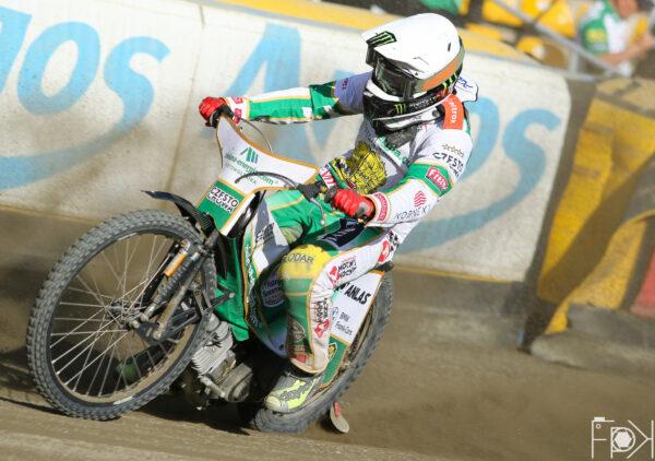 Bartosz Zmarzlik po atomowym starcie na pewnym prowadzeniu od startu do mety. Bieg układał się an 4:2 dla gorzowskiej Stali, ale w walce o jedne punkt Bartosz Smektała na drugim okrążeniu wyprzedził Hansena.