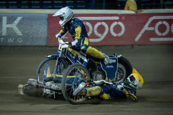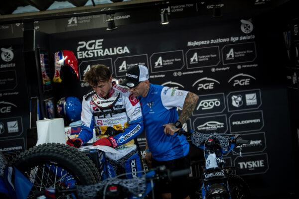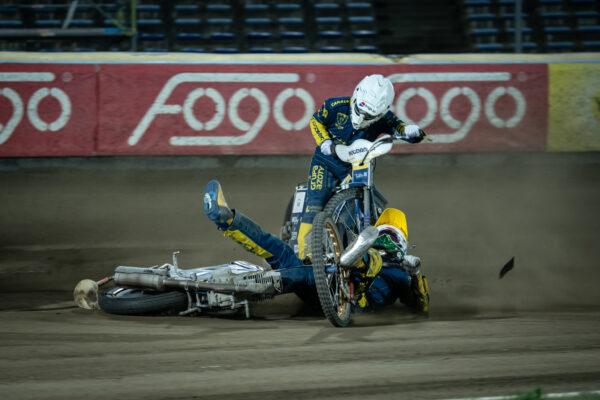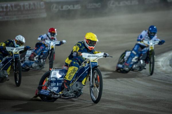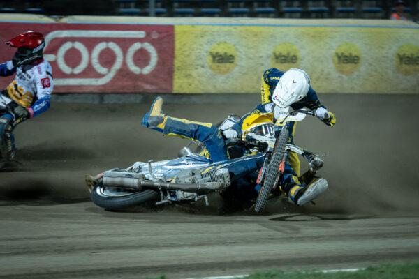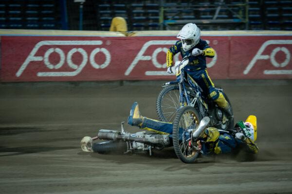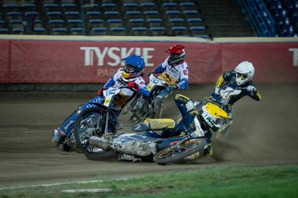 Dominik Kubera najlepiej spod taśmy startowej. Na wyjściu z pierwszego łuku dołączył do niego Mikkel Michelsen. Para gospodarzy bez szans w tym starciu.