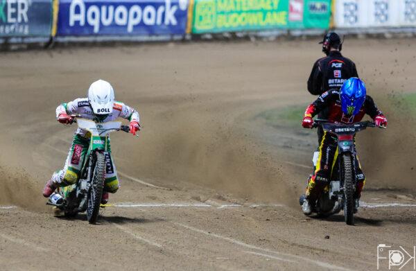 Goście lepiej ze startu, wyszli na podwójne prowadzenie. I choć Bewley starał się i szarpał po zewnętrznej, to nie pokonał żadnego z gości, którzy dzięki podwójnemu zwycięstwu znów wychodzą na prowadzenie.