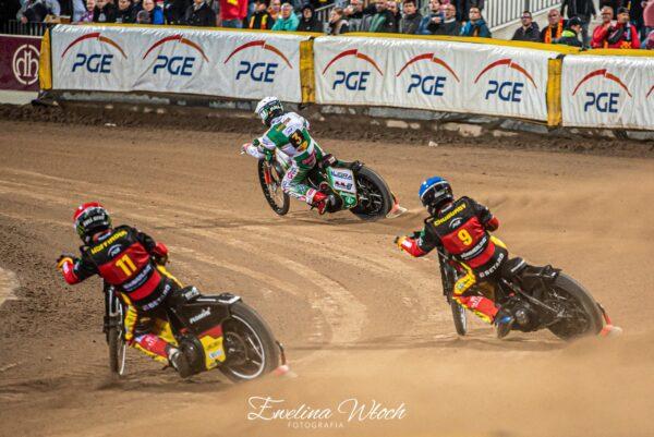 Start dla gości. Lindgren szybko uciekł, a Bewley dał Worynie wjechać po szerokiej. Anglik był tuż za Polakiem, ale nie miał argumentów, aby go wyprzedzić. Janowski z tyłu.