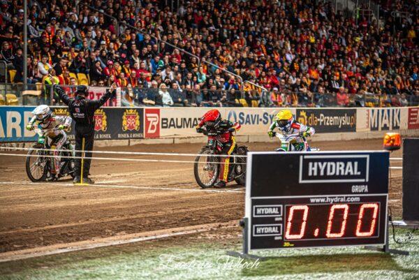 Świetnie wykorzystał pierwsze pole Kacper Woryna, który błyskawicznie wyjechał szerzej i nie zostawił miejsca Woffindenowi. Miśkowiak daleko z tyłu, a drugi do mety dojechał Chugunov, który wyglądał lepiej niż w pierwszym biegu.