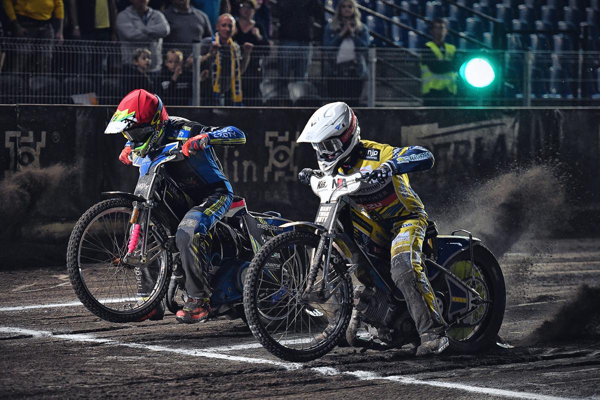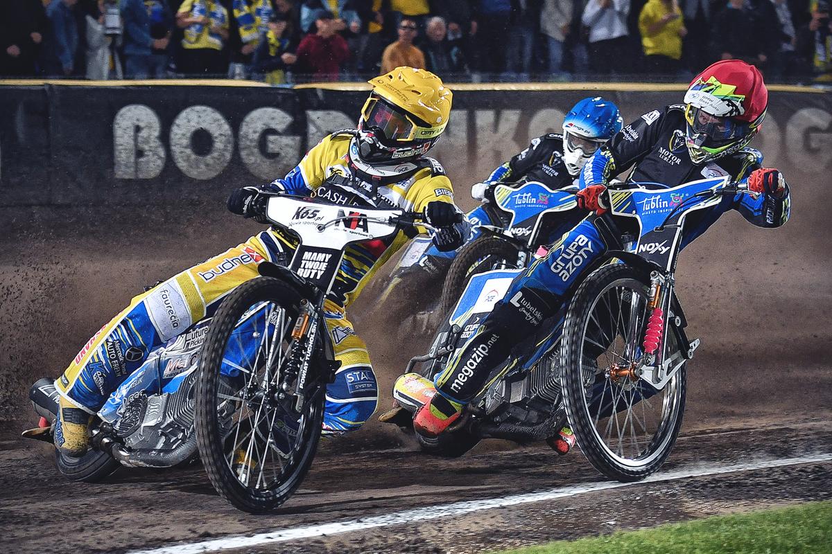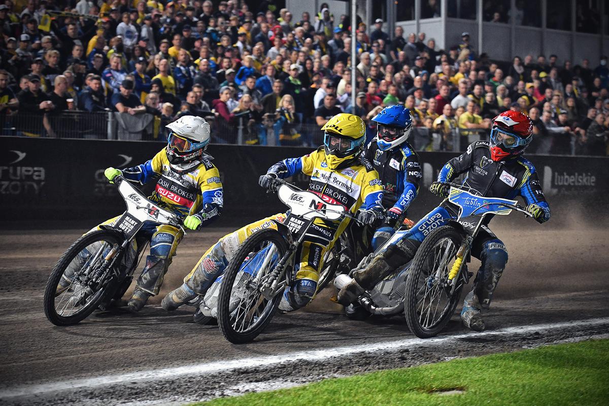Mimo że na początku zawodów gorzowianie dobrze weszli w mecz, to już w drugiej serii gospodarze odpowiedzieli gościom ze zdwojoną siłą. Z fantastycznej strony pokazał się Mikkel Michelsen (11), który zdołał pokonać równie świetnego tego wieczoru dwukrotnego mistrza Świata Bartosza Zmarzlika (16). MOTOR powalczy o złoty medal DMP. Z kolei MOJE BERMUDY STAL będzie rywalizować o brąz. Zdjęcia Przemysława Gąbki.