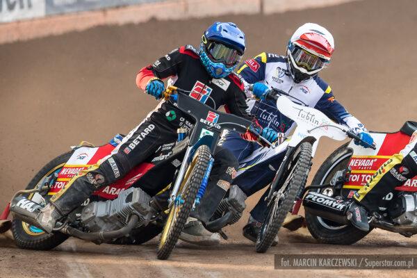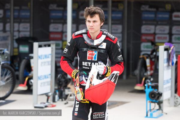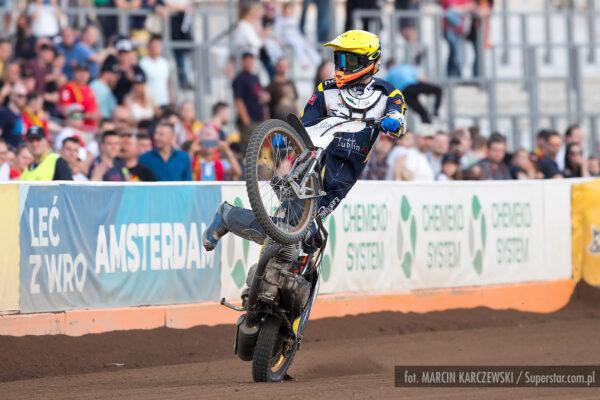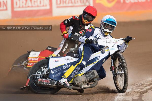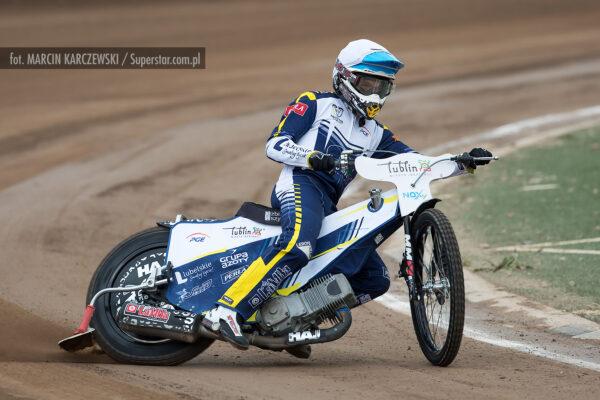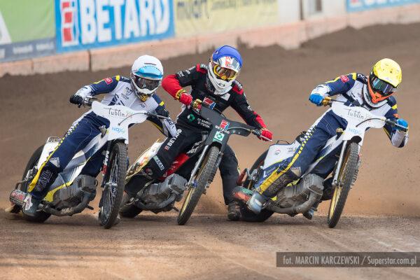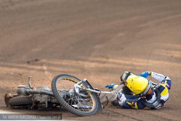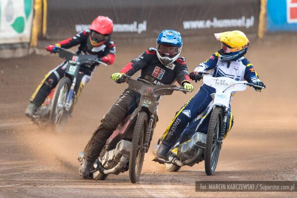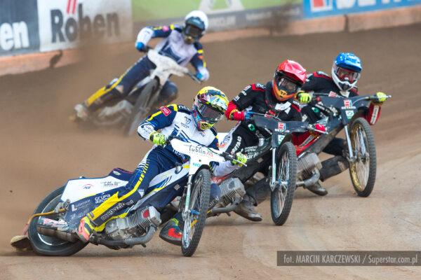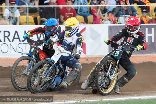 Bardzo ciasno na pierwszym łuku, Patryk Wojdyło nie znalazł dla siebie miejsca i spadł na ostatnią pozycję. Pewna wygrana Macieja Janowskiego.