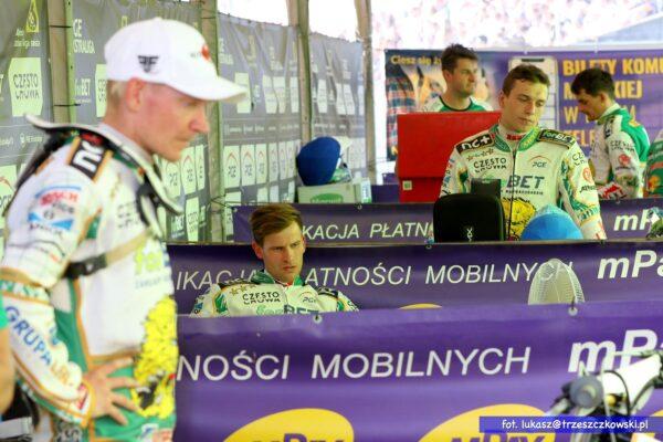 Kołodziej wygrywa start, jednak na drugim okrążeniu musiał uznać wyższość Madsena. Częstochowianie zaczynają delikatnie odrabiać straty.