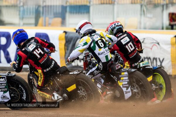 Para zielonogórska od razu po starcie wyszła na prowadzenie. Pomimo starań gospodarzy, nie udało im się wyprzedzić Piotra Protasiewicza i Michaela Jepsena Jensena.