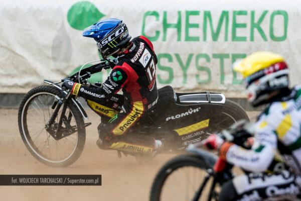 Świetny start Taia Woffindena, który od razu odjechał rywalom na sporą odległość i utrzymał przewagę do końca wyścigu. Michał Curzytek daleko z tyłu. Protasiewicz i Jepsen Jensen bez kontaktu z prowadzącym Woffindenem.