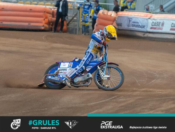 Świetną robotę w tym biegu zrobił Denis Zieliński. Najpierw założył Jaimona Lidseya, a następnie wypchnął Dominika Kuberę, robiąc tym samym miejsce dla Krzysztofa Buczkowskiego, który wyjechał na prowadzenie. Kubera po trasie minął Zielińskiego.