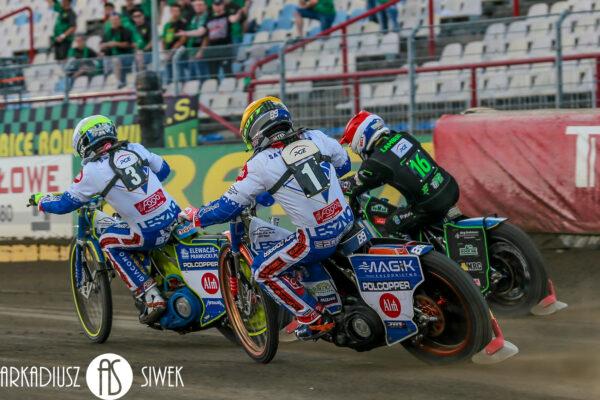 Świetny start nie pomógł rybnickim Rekinom. Widać, że Piotr Pawlicki znalazł prędkość, na drugim łuku wyprzedził Adriana i nie pozwolił mu się już wyprzedzić. Ostatni przyjechał junior FOGO UNII Leszno.