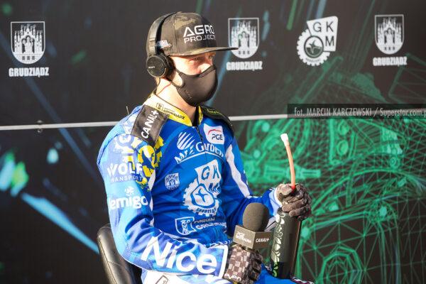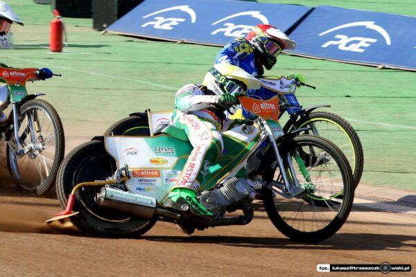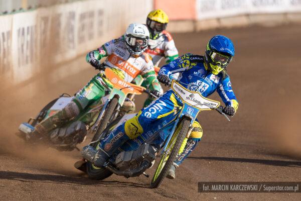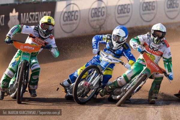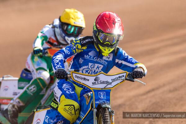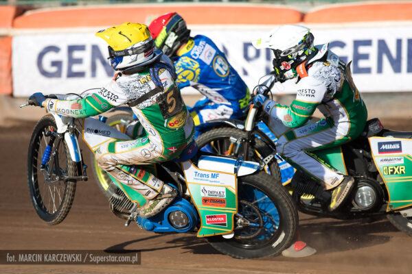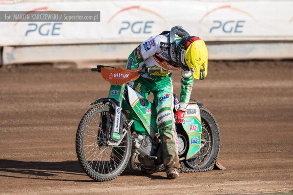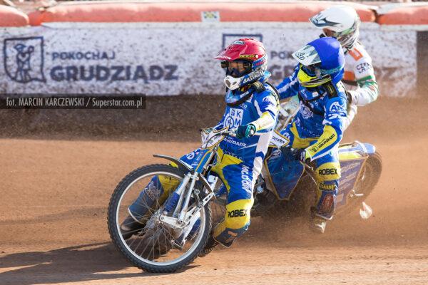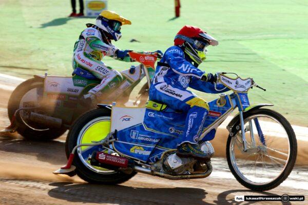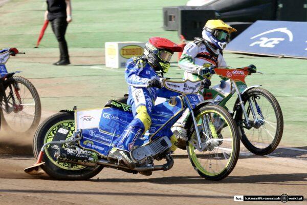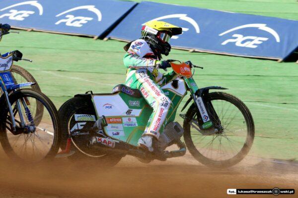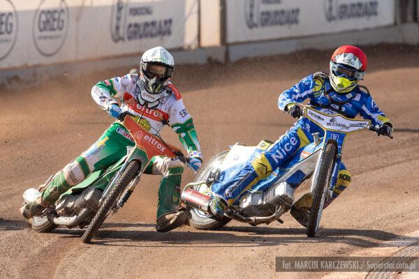 Dobrze wykorzystana rezerwa taktyczna skutkuje podwójnym zwycięstwem pary MRGARDEN GKM-u Grudziądz. Holta na drugim łuku trzeciego okrążenia miał problem z utrzymaniem motocykla, przez co spadł na ostatnią lokatę.