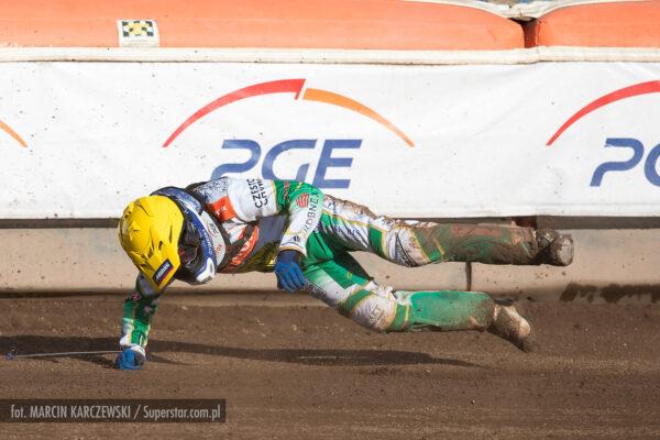 Duńczyk wstał i udaje się do parku maszyn o własnych siłach. Decyzją sędziego Madsen zostaje wykluczony z powtórki biegu.