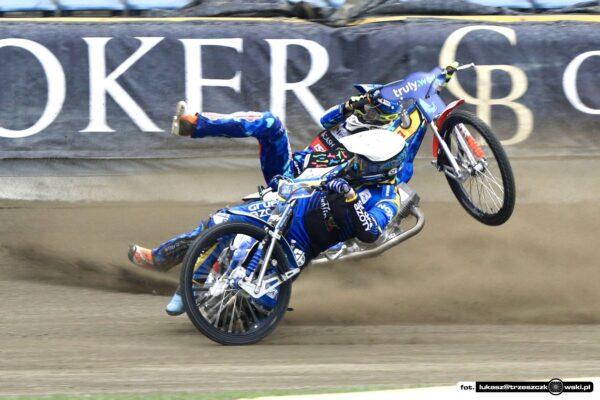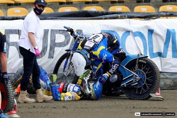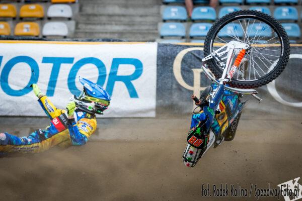 Upadek na wejściu w pierwszy łuk. Po szerokiej napędził się Niels Kristian Iversen i delikatnie pod łokieć wszedł mu Zagar