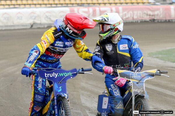 Atomowym startem popisała się para Motoru Lublin. Na drugim łuku Kasprzak przeszkodził napędzającemu się Thomsenowi. Pewne podwójne zwycięstwo gości!