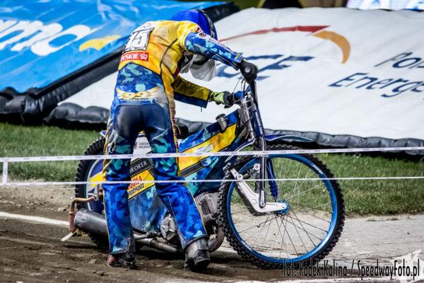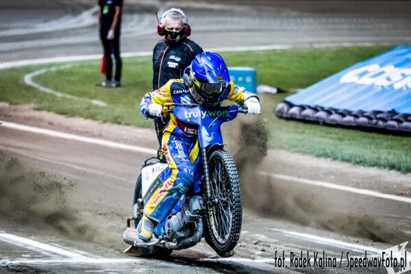 Bartosz Zmarzlik napędził się po szerokiej i jak z procy wyszedł na prowadzenie na przeciwległej prostej. Niespodziewanie na drugie miejsce wysforował się Jasiński, który popełnił jednak błąd na trzecim okrążeniu, przez co wyniosło go pod bandę i wyprzedził go Bjerre.