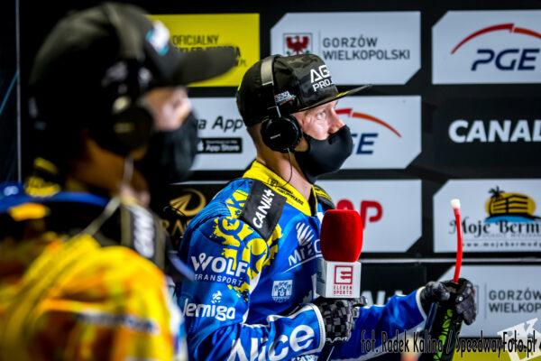 Moment startowy należał do gospodarzy i na wyjściu z pierwszego łuku MOJE BERMUDY Stal Gorzów cieszyła się z podwójnego prowadzenia. Na dystansie po szerokiej napędził się Laguta i na drugim okrążeniu wyprzedził Woźniaka. Pewnie zwycięstwo Zmarzlika