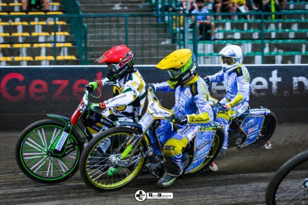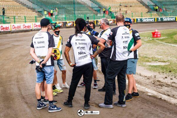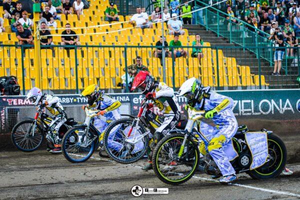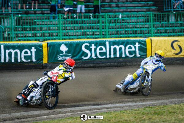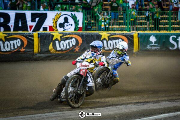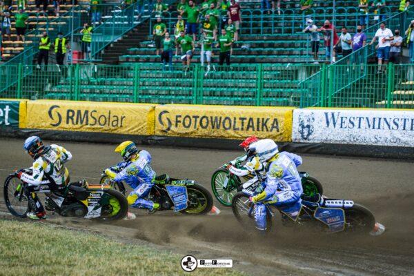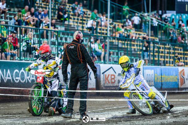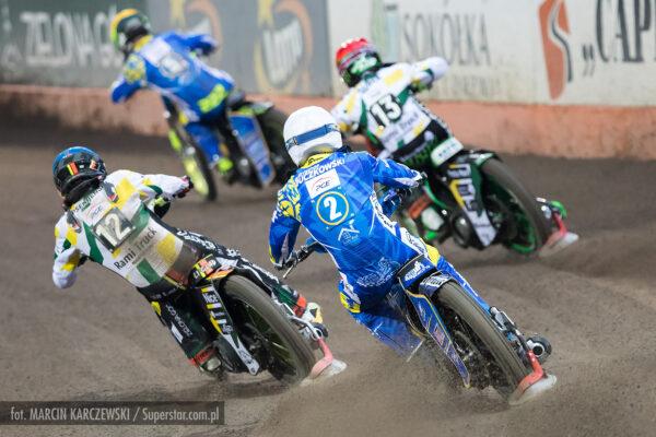 Roman Lakhbaum został ostro wypchnięty, ale utrzymuje się na motocyklu. Nicki Pedersen bezbłędnie do metry. Zawodnicy RM SOLAR FALUBAZ Zielona Góra byli jednak ciągle blisko, czekając na błąd rywala.