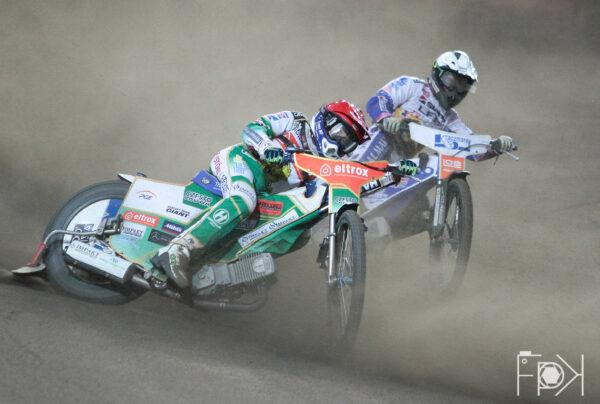 Atomowy start leszczyńskich "Byków", którzy pewnie prowadzili w tym biegu od startu do mety. Zdecydowane podwójne zwycięstwo FOGO Unii Leszno i na pierwszej przerwie to goście powiększają prowadzenie do sześciu punktów.