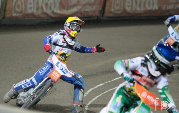 Kapitalny start Emila Sayfutdinova, który nie oddał prowadzenia do linii mety. Na dystansie Janusz Kołodziej próbował do samego końca starał się wyprzedzić Jasona Doyla, ale ostatecznie Australijczyk przywozi cenny jeden punkt, który daje kolejny remis biegowy w spotkaniu.
