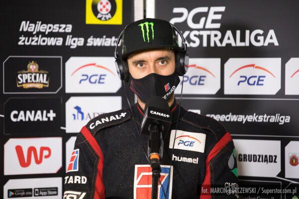 Emocje na torze w Grudziądzu. Początkowo podwójnie jechała para gospodarzy, lecz Tai Woffinden na trasie poradził sobie z Buczkowskim, a następnie do samego końca atakował Nickiego Pedersena.