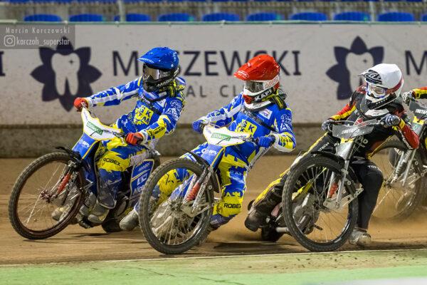 Świetny bieg już na początku zawodów. Para gospodarzy lepiej wyszła spod taśmy, lecz Curzytek minął Zielińskiego. Juniorzy tasowali się pozycjami, lecz lepszy okazał się junior BETARD SPARTY Wrocław.