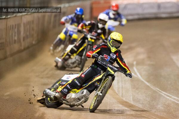 Para gospodarzy wyjechała lepiej ze startu. Przez chwilę Kennetha Bjerre atakował Przemysław Liszka, lecz zawodnik gospodarzy odjechał juniorowi gości.