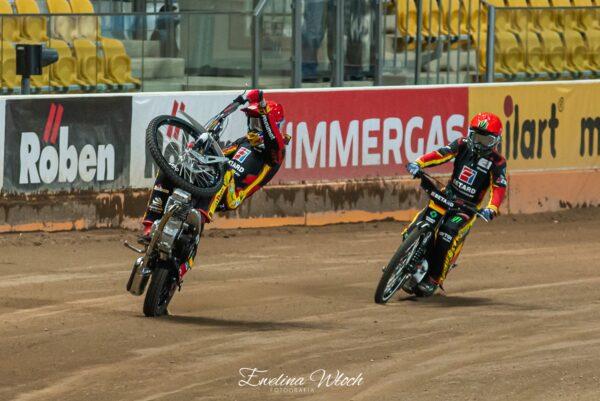 Po starcie wydawało się, że wrocławianie obejmą prowadzenie, ale Robert Lambert minął parę BETARD SPARTY przy krawężniku na przeciwległej prostej. Dość wyraźne różnice między zawodnikami.