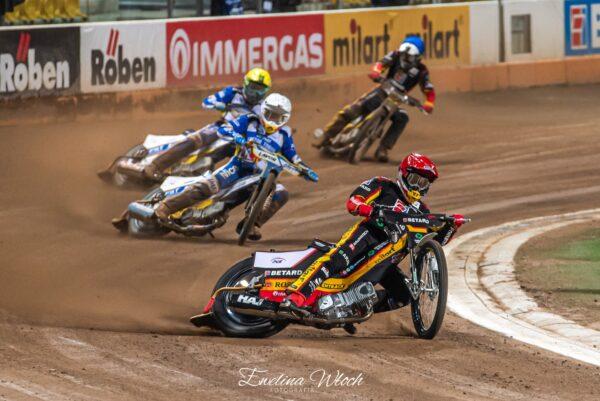 Start należał do Jacka Holdera. Australijczyk rozprowadził pozostałych zawodników w pierwszym wirażu, a pod bandą, na wejściu w drugi łuk, dołączył do niego Paweł Przedpełski. Maciej Janowski robił wszystko, by wyprzedzić przyjezdnych, ale byli oni zbyt szybcy.