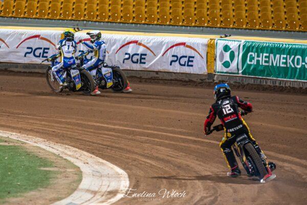 Chris Holder nieźle wystartował, ale to było zdecydowanie za mało na świetnie dysponowanych zawodników gospodarzy. Janowski i Laguta w pierwszym łuku odwieźli Holdera nieco szerzej i pomknęli do mety po pięć punktów. Duże różnice między zawodnikami.