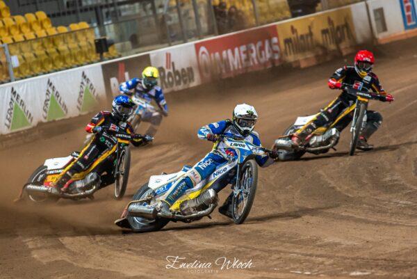 Świetny start Macieja Janowskiego. Kapitan gospodarzy utrzymał się przy krawężniku i bardzo szybko odjechał rywalom. Zawodnicy na dystansie nie zamieniali się pozycjami.