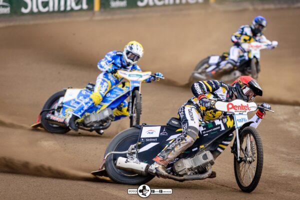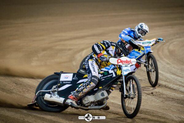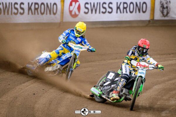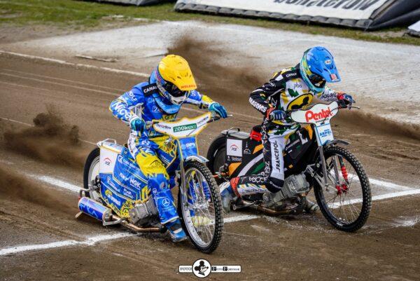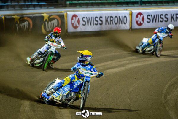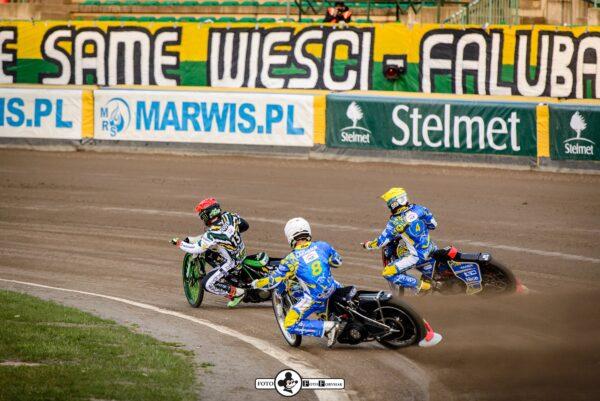 Damian Pawliczak blokuje rywala, co pomaga Matejowi Zagarowi wyjść na drugie miejsce. Potem perfekcyjna jazda parą zawodników MARWIS.PL FALUBAZ Zielona Góra