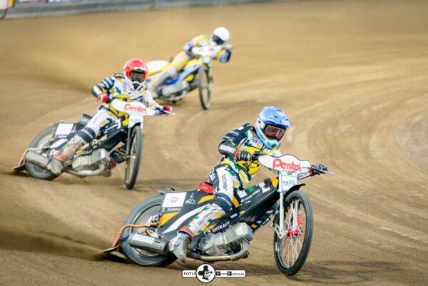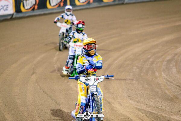 Kamil Pytlewski rusza z wielkimi problemami, ledwo ustając na motocyklu. Gospodarze spokojnie dojeżdżają do mety z dużą przewagą.