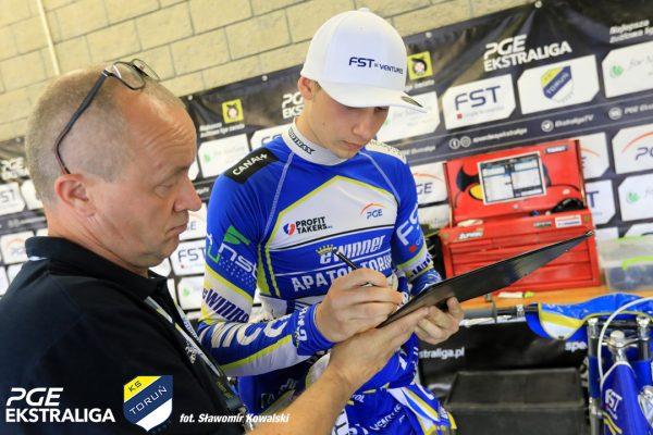 Mamy rezerwę taktyczną. Za Chrisa Holdera pojedzie Paweł Przedpełski. Dwie minuty dla wychowanka toruńskiego klubu.