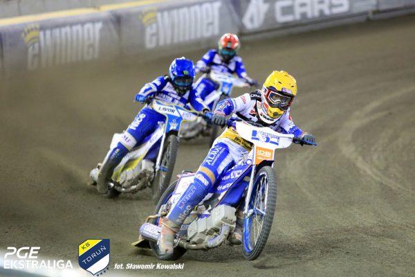 Ze startu na podwójnym prowadzeniu wyjechali gospodarze, ale Lewandowskiego szybko minął Pludra. Chwilę później wyczyn ten powtórzył Kołodziej. I zabrał się za ataki na Przedpełskiego. Trzy punkty do mety dowiózł jednak wychowanek toruńskiego klubu.