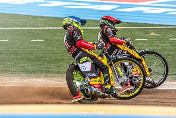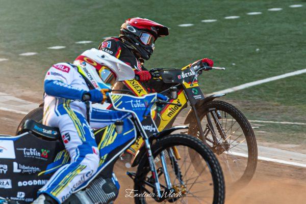 Goście wykorzystali lepsze pola startowe i wyszli na podwójne prowadzenie. Daniel Bewley starał się po całej szerokości toru szukać odpowiedniej ścieżki, żeby wyprzedzić rywali, ale to mu się nie udało. Goście odpowiadają!