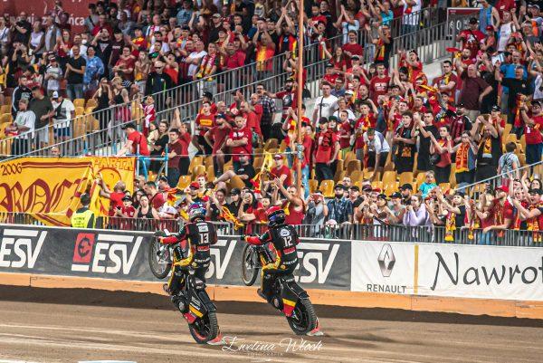 Ależ niesamowite emocje na koniec! Goście wyszli lepiej ze startu, ale Maciej Janowski najpierw pokonał Hampela, a chwilę później w odważnym ataku po bandzie – Lagutę. Chugunov też wyprzedził Hampela i ścigał Lagutę, ale Rosjanin obronił swoją pozycję. 91:89 dla Motoru Lublin w dwumeczu. Bonus jedzie z gośćmi!
